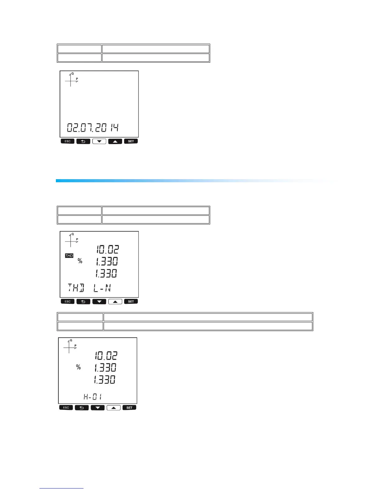 For models with THD, only current THD and voltage THD screens will be displayed.