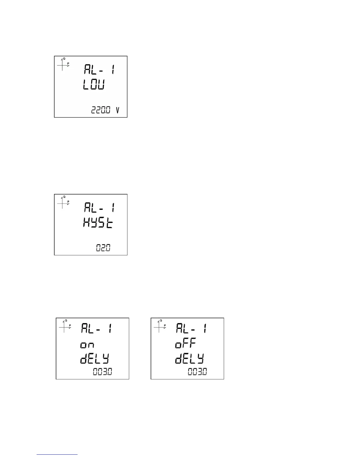 1. After entering a hysteresis value, press the UP button to find the Alarm On Delay menu.