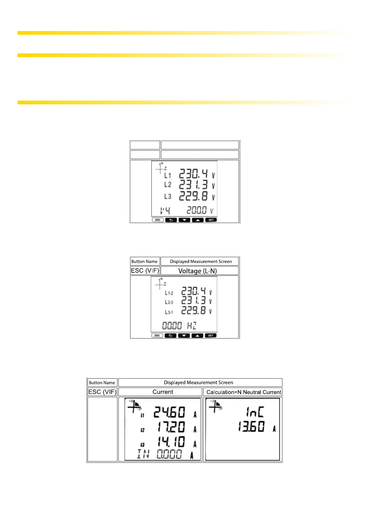 5.1.1 Current, Voltage and Frequency Screens