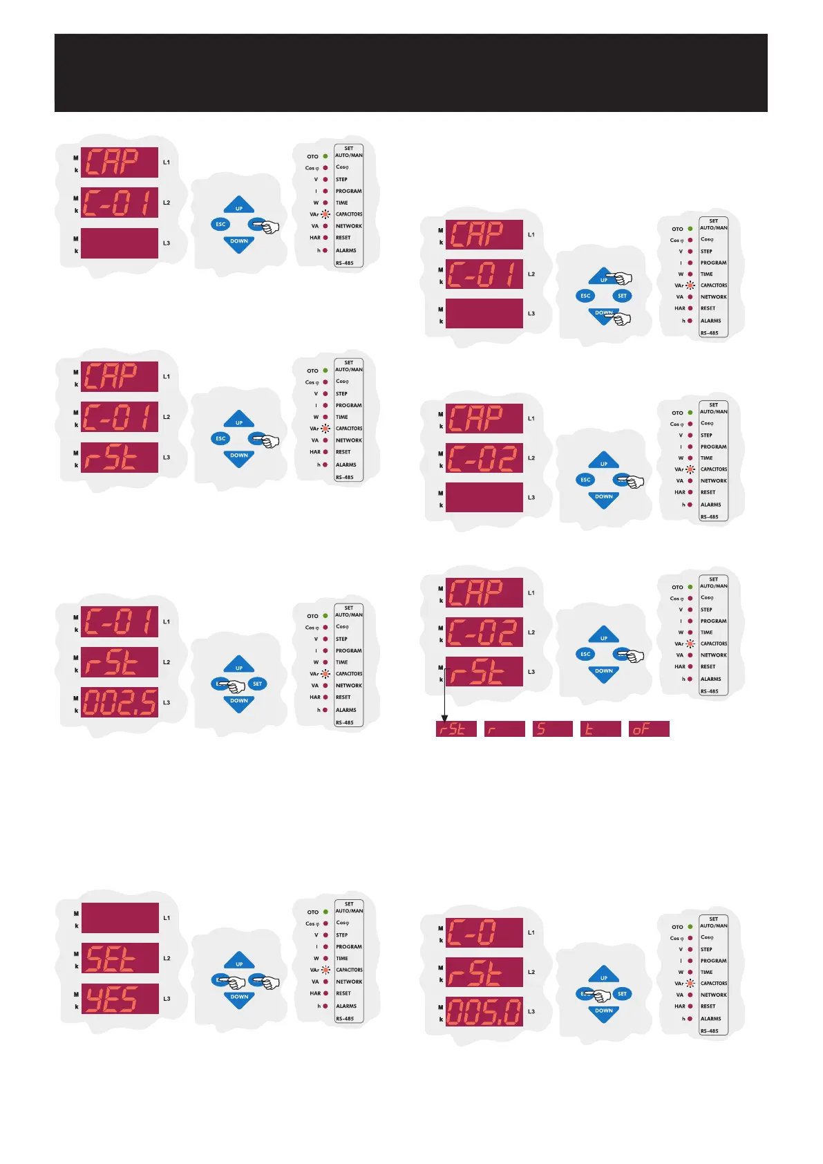 Press the SET button to set second capacitor steps