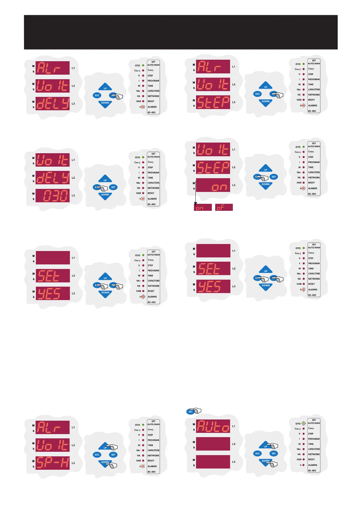 alarm occurs, capacitor steps switch on or switch off settings are done