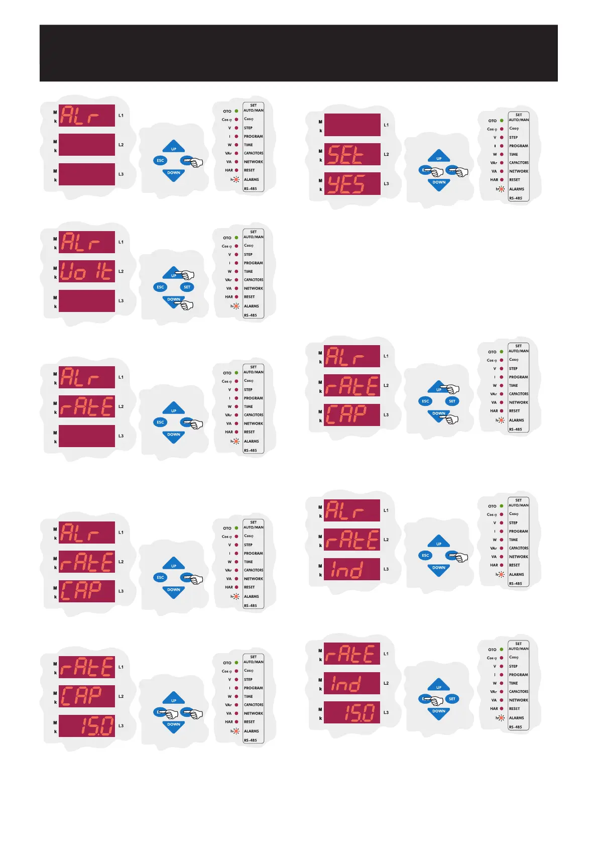 Press the SET button to enter the alarm(ALr) settings menu.