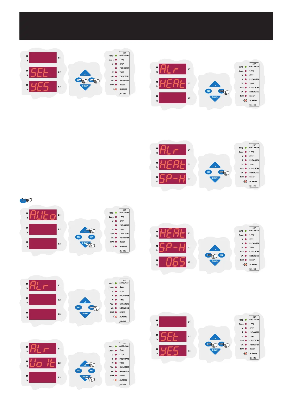 Press the SET button to enter the alarm(ALr) settings.