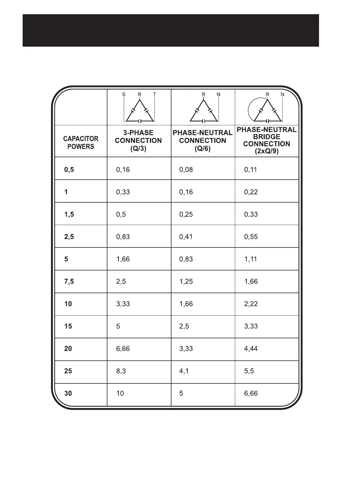 CAPACITOR CALCULATION TABLE
