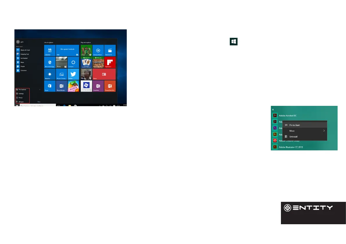 Click the start buon. Right click on an applicaon icon and select pin to start. This will create a le