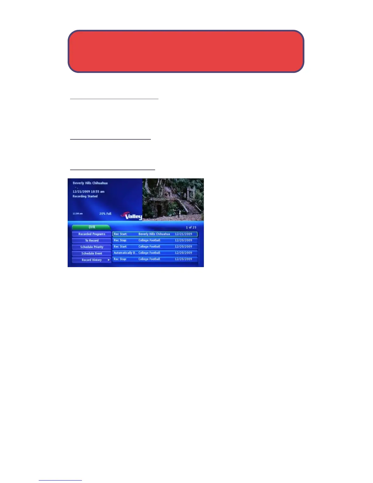Entone Digital TV - PVR;DVR Recording History; Reviewing Your Recording History