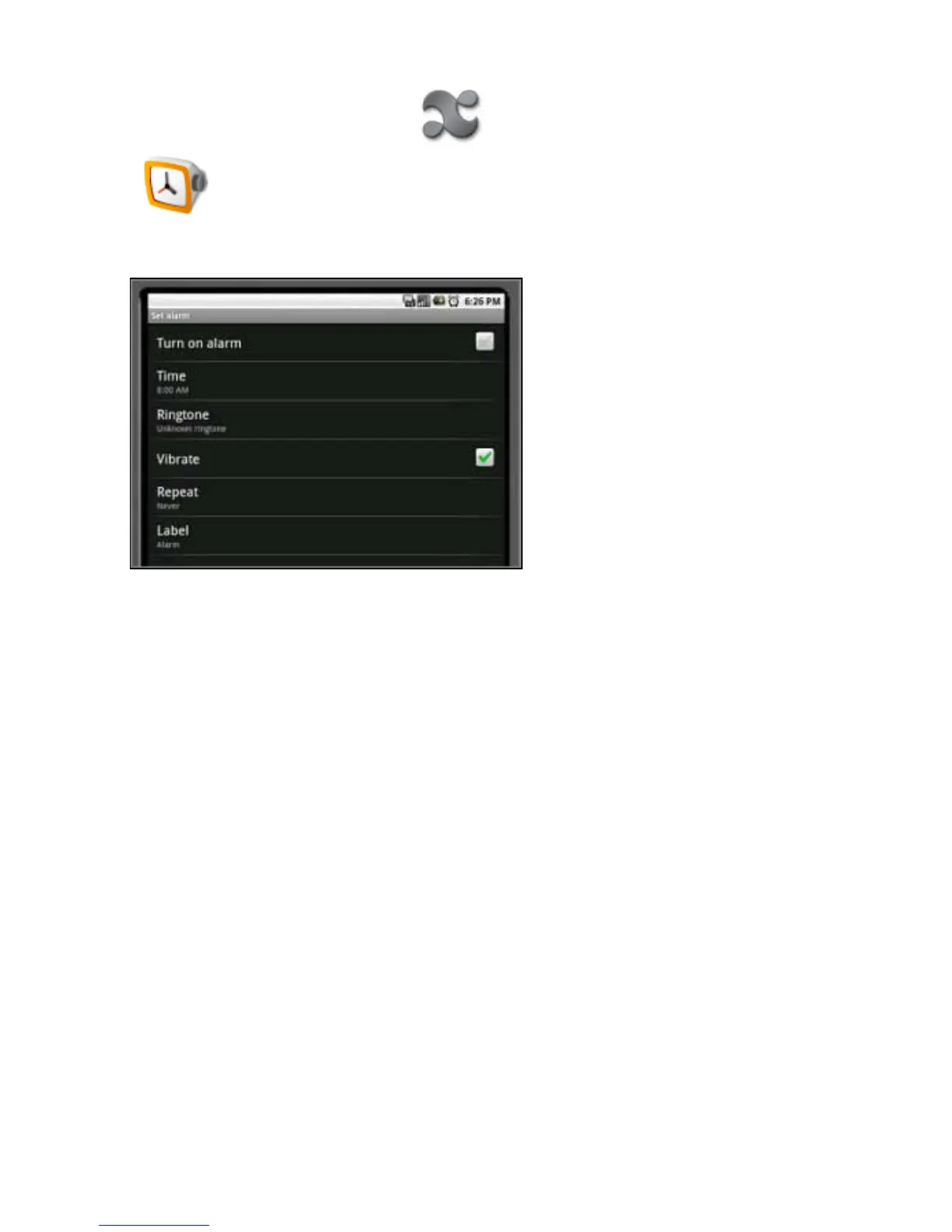 1. Open the applications menu by pressing the applications icon and touch the Alarm Clock