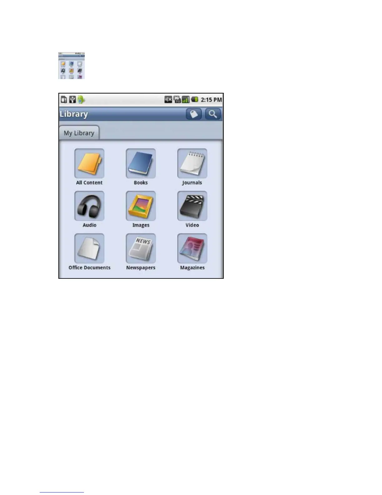 Onthetablet,presstheLibraryicontoviewyourbooks,music,orpictures.