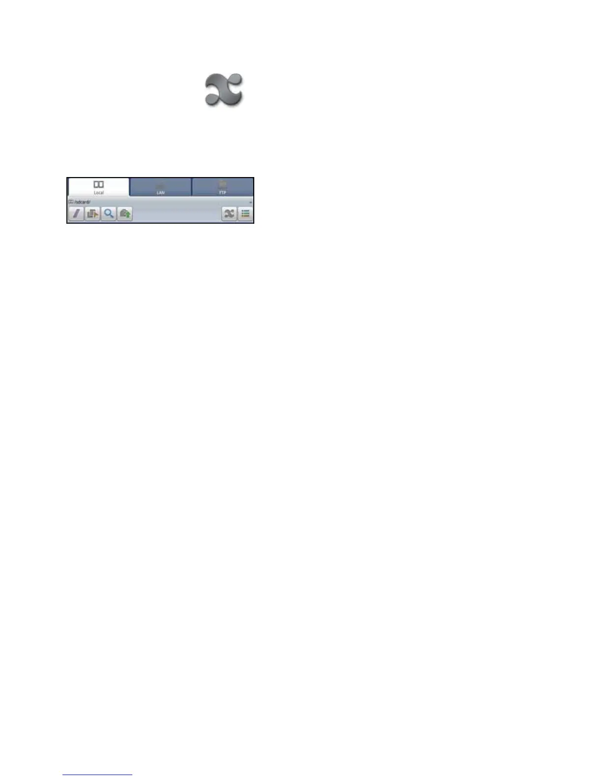 Thedevicelestructureisshown.Youcanselectafolderfromthelist.TherearetabsforLocal,LAN,orFTP.