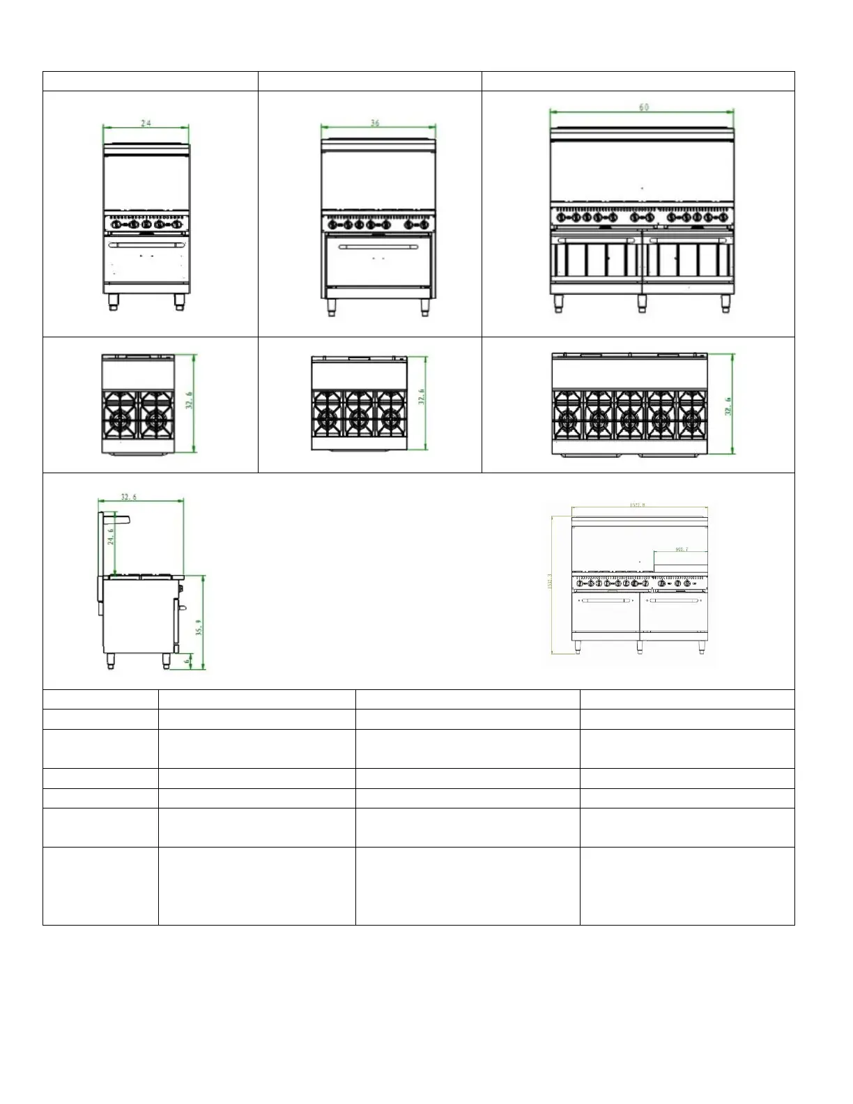 Entree R4-N - Equipment Specifications; Model Dimensions and BTU Ratings