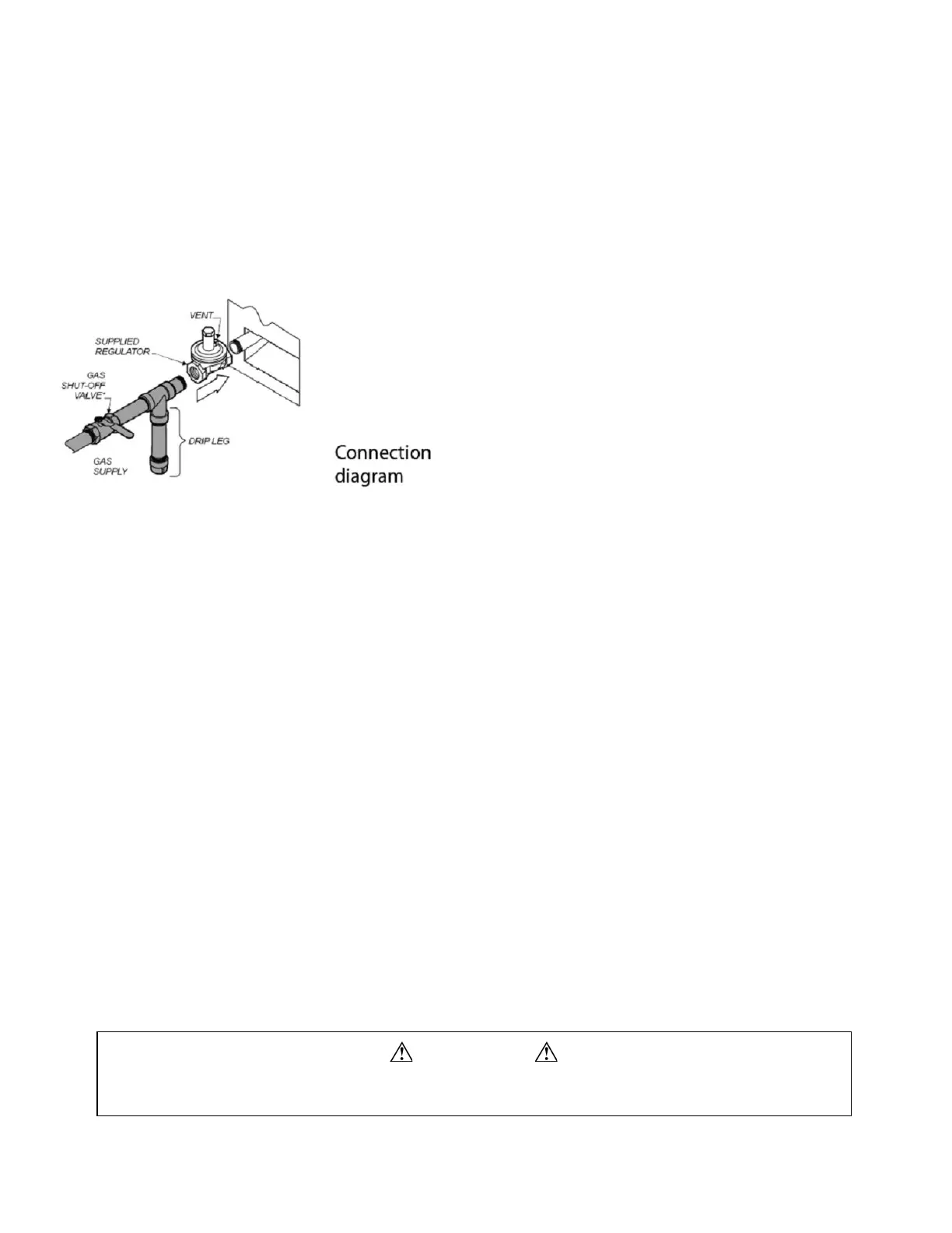 DO NOT use an open flame to check for leaks. Check all gas piping for leaks with a soap and water