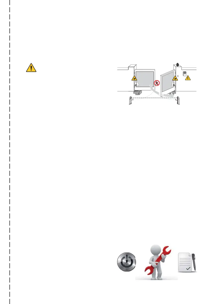 mouvement. Ne jamais se mettre dans le rayon d’action de la porte ou