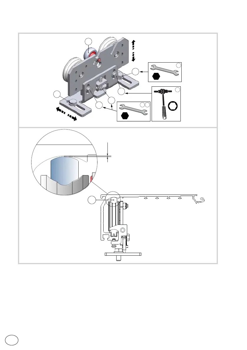 Make sure that the central wheel [D] is adjusted as illustrated in the picture.