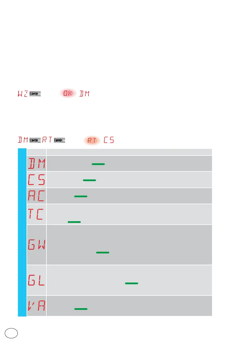 When OK has stopped flashing, DM, the first menu parameter, is displayed.