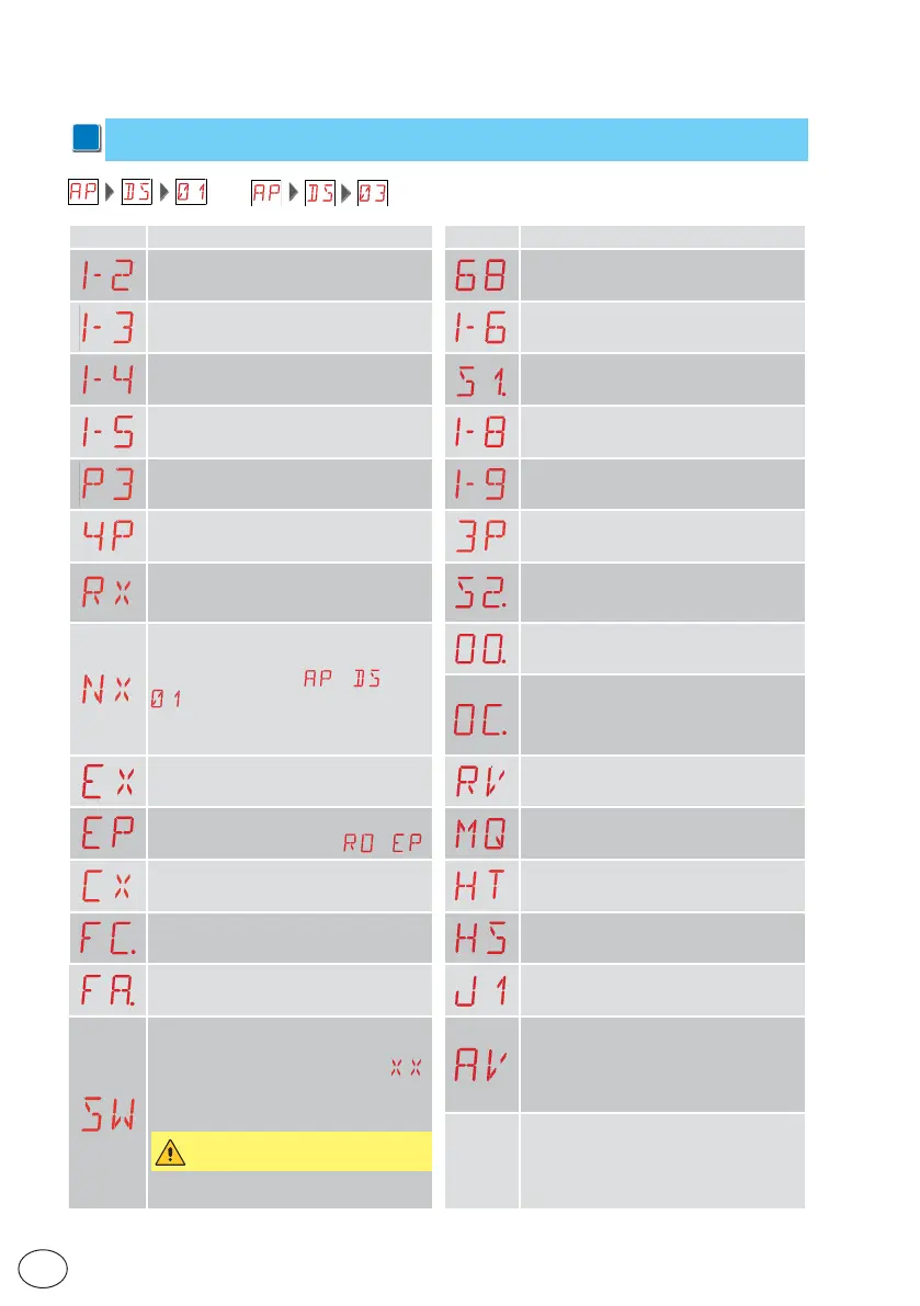 CX - Command received from AUX1 board HT - Heating of the motors (NIO function)