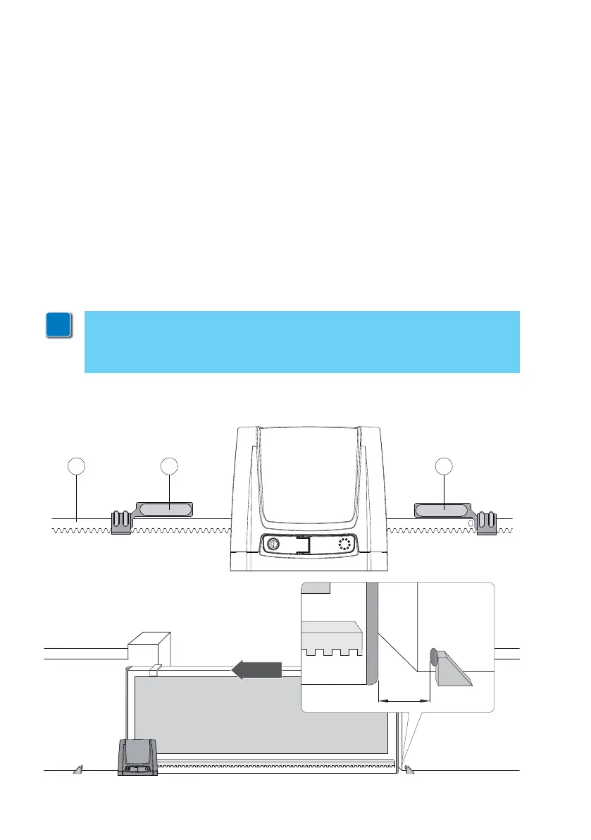 e [B] de modo que o portão pare cerca de 20 mm antes das batidas mecânicas de abertura e