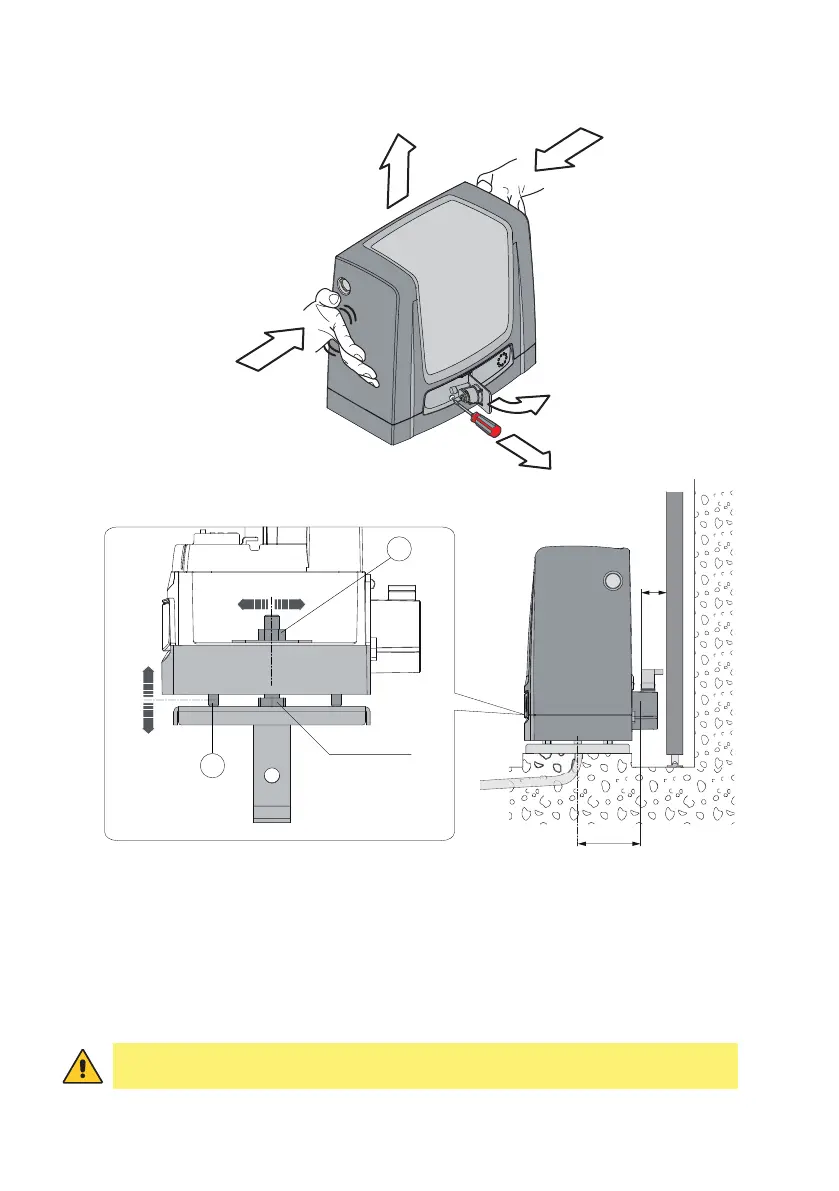 NB: during the vertical adjustment, keep the gearmotor slightly raised from the base plate so