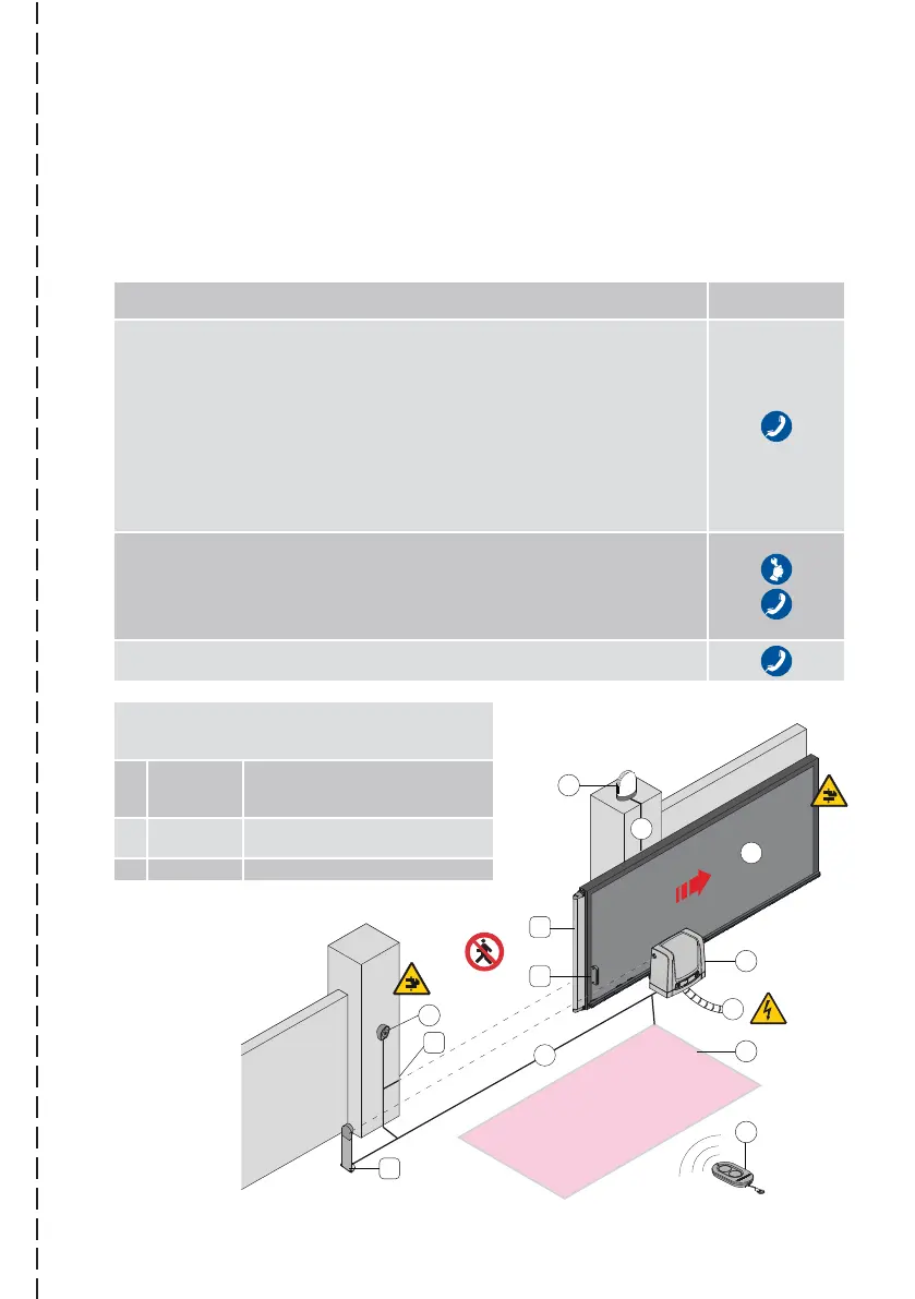 • Vérifier les conditions du portail [C] et les pattes de fixation et que le coulissement s'effectue