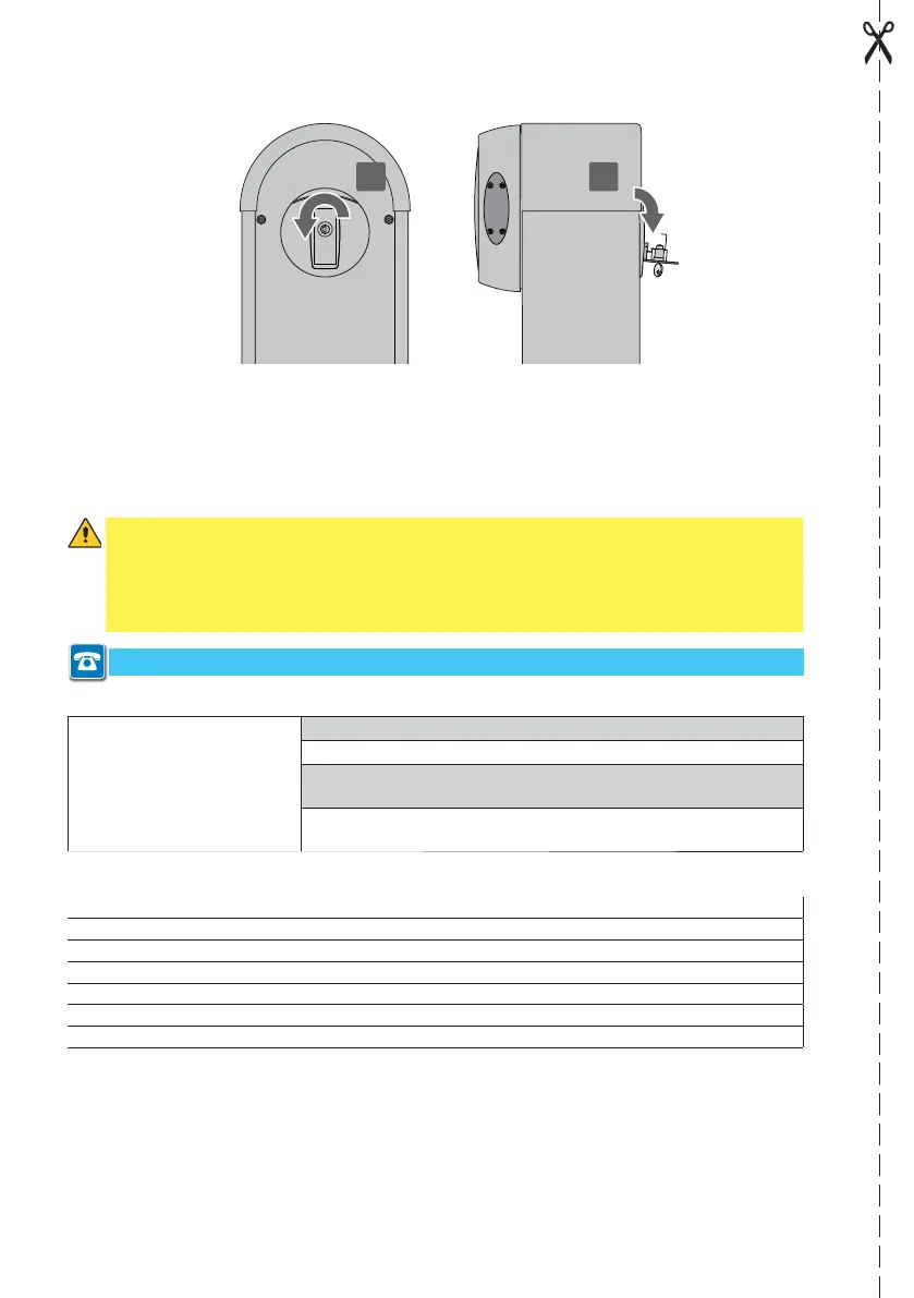 In the event of a fault or power failure, insert the key, turn it anticlockwise and completely open
