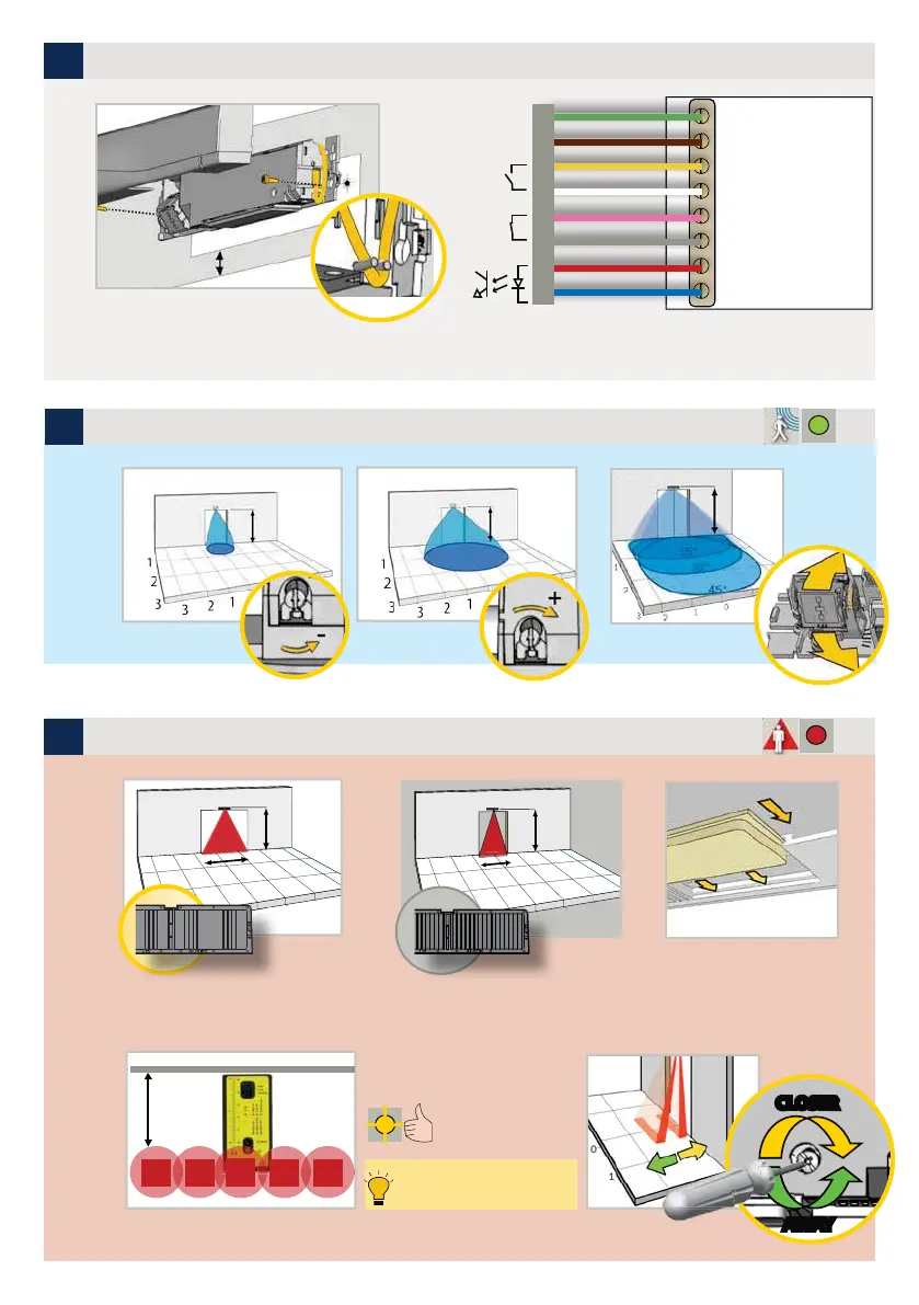Detection field width indicated according to conditions defined in EN 16005 and including dimension of test body CA.