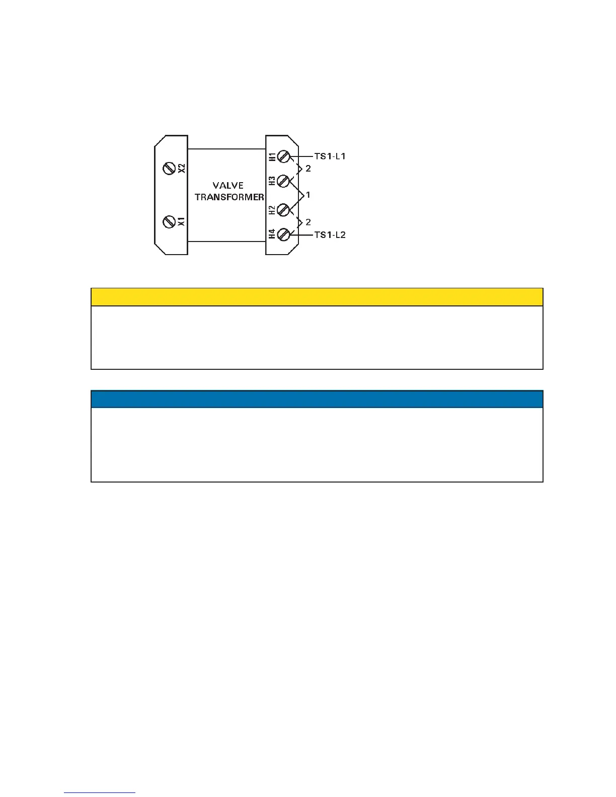 3. Valve Transformer: Jumpers on the valve transformer H1, H3, H2, and H4 must be