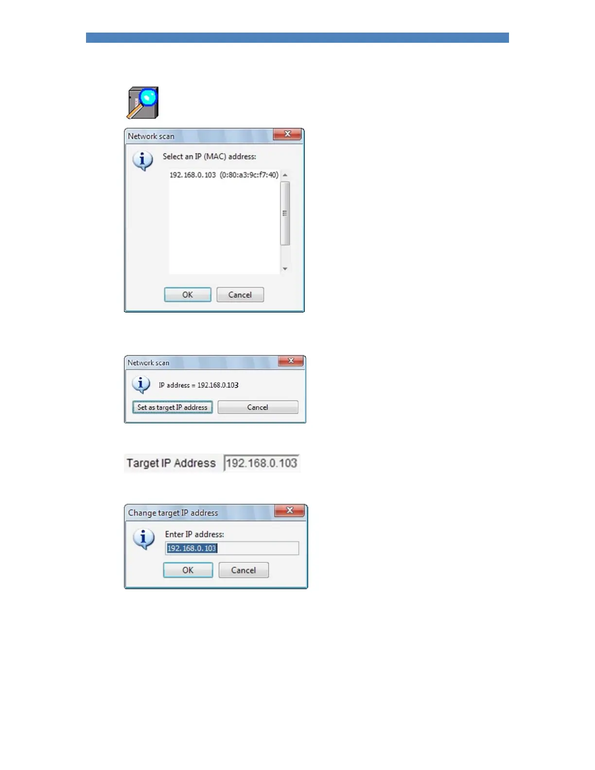 If Set as target IP address is selected the IP address will be shown as the target IP address:
