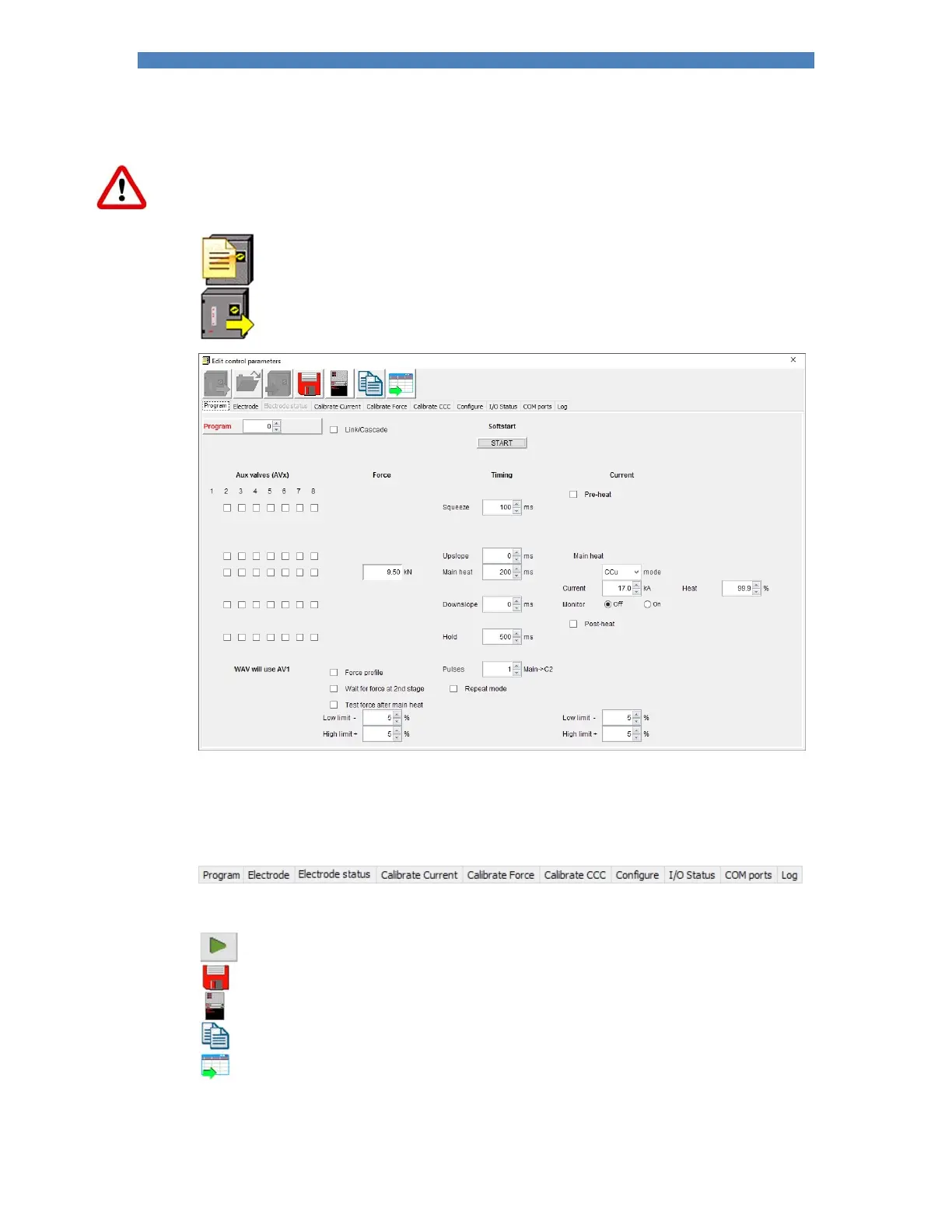 The Program screen is shown. This screen contains the parameters that control the weld sequence for