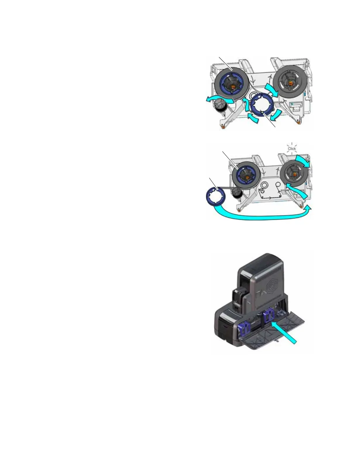 6. Turn the take-up spool one full turn clockwise to take up ribbon slack.