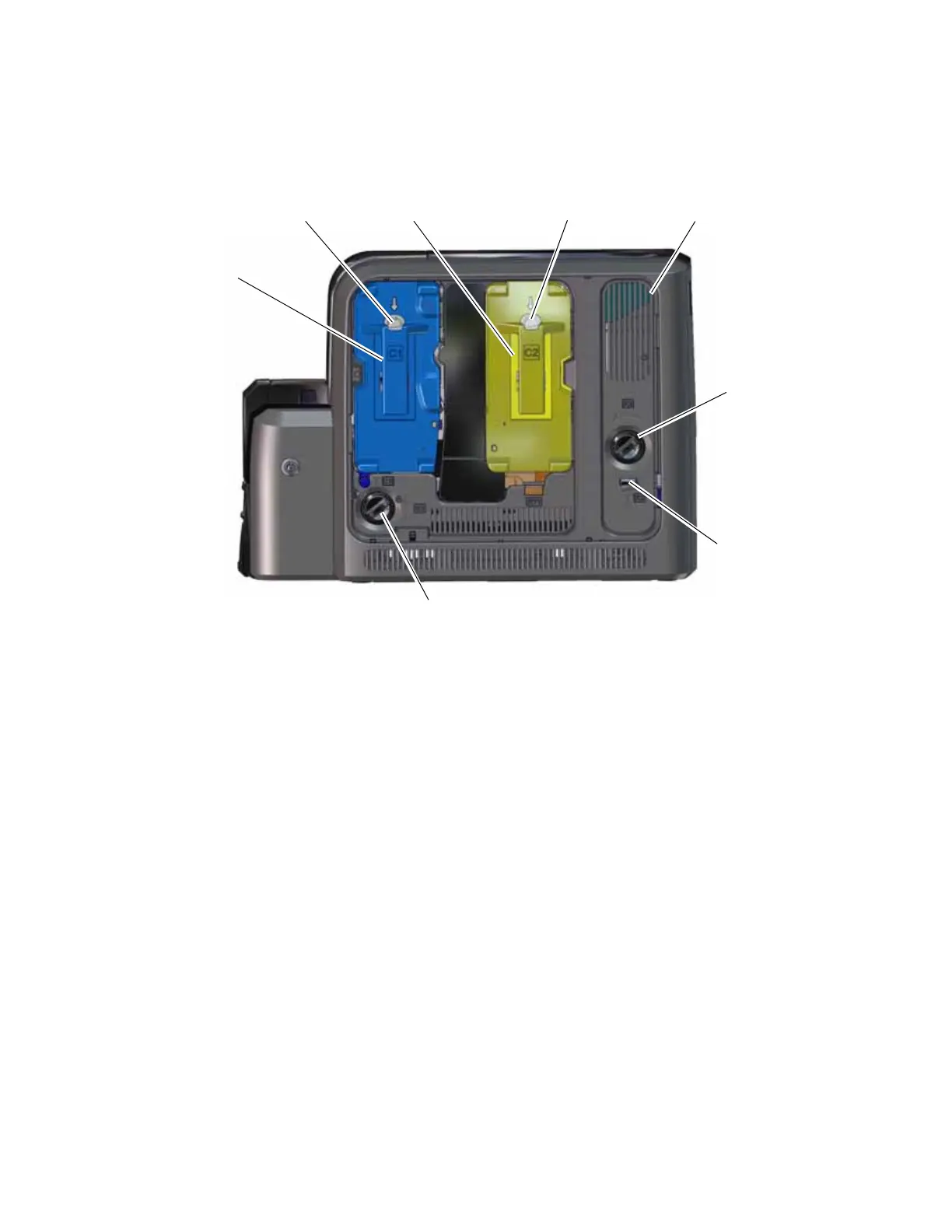 Cartridge Release Buttons The ink ribbon and retransfer film cartridge release buttons