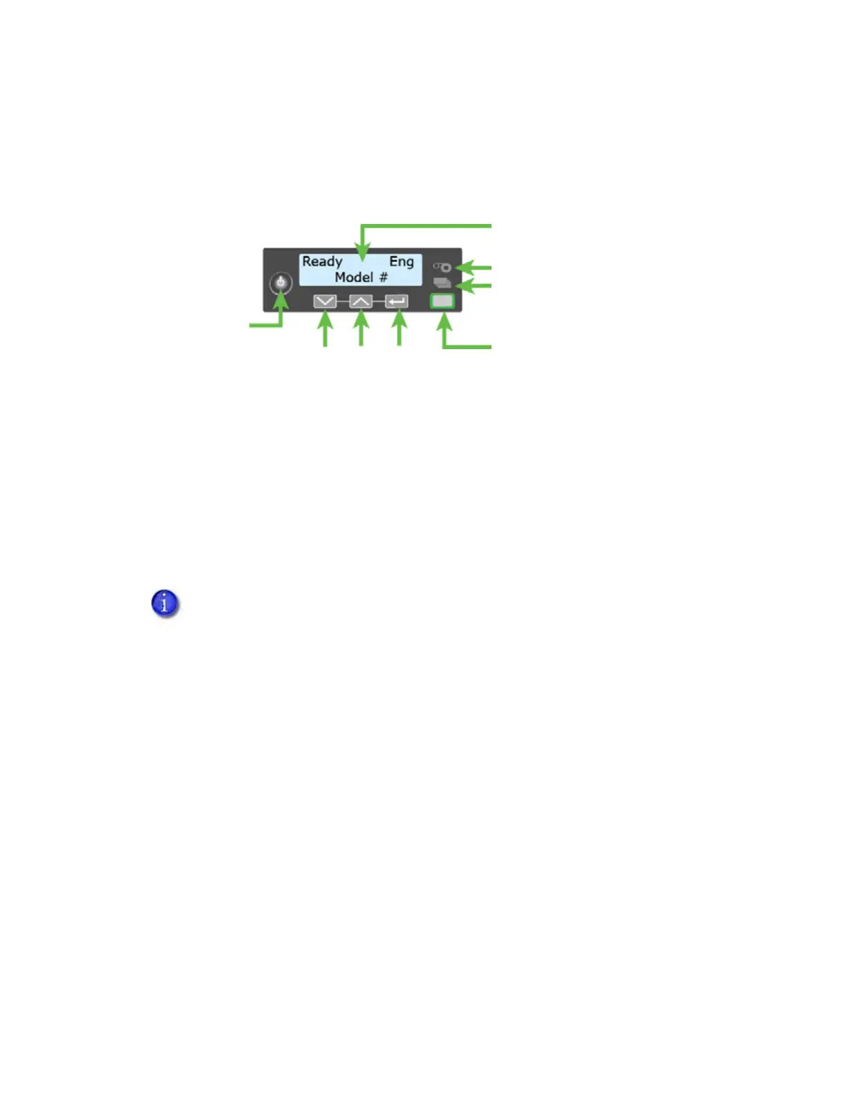Press the up or down arrow key while the LCD panel displays Ready to display additional
