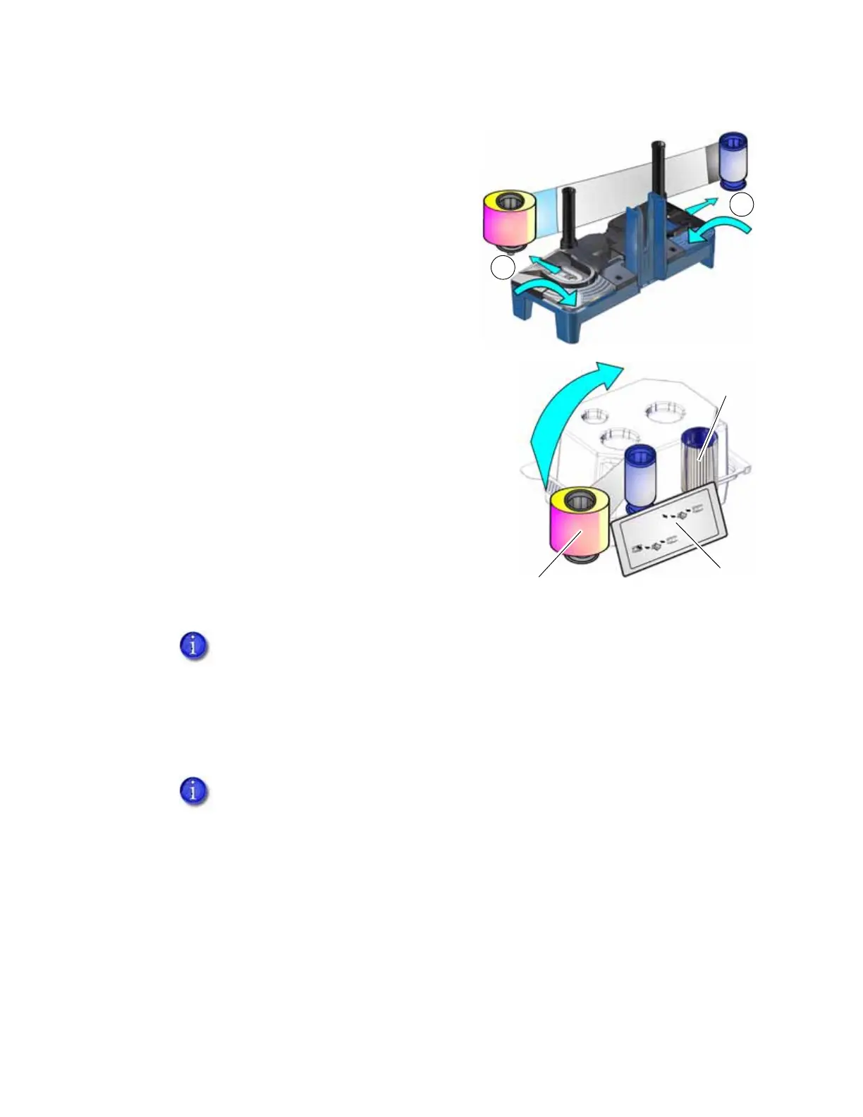 6. Remove the new ink ribbon from its package. Hold the ribbon cores and pull them up from