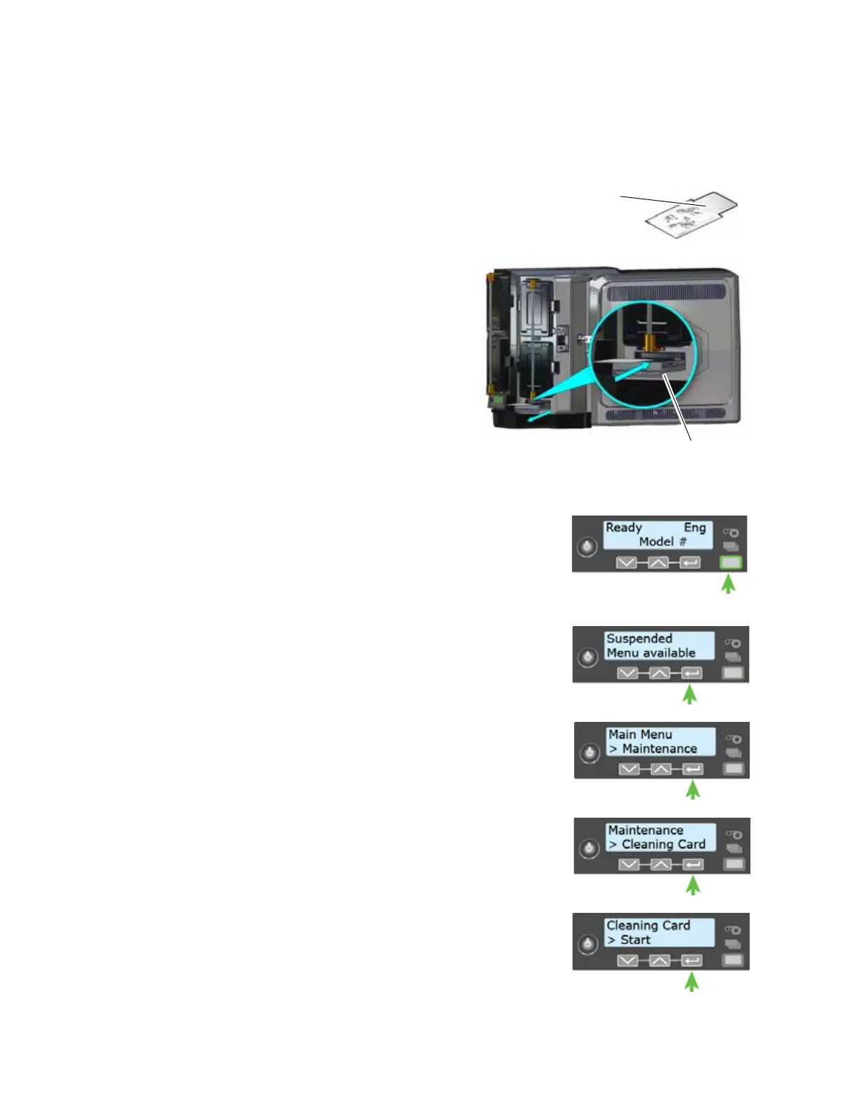 d. Cleaning Card displays on line 2 of the LCD panel. Press