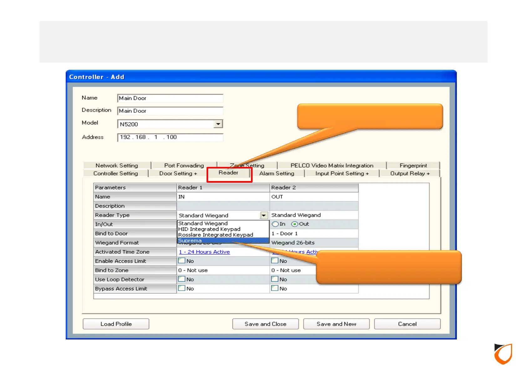 ‘Reader Type’ dropdown list