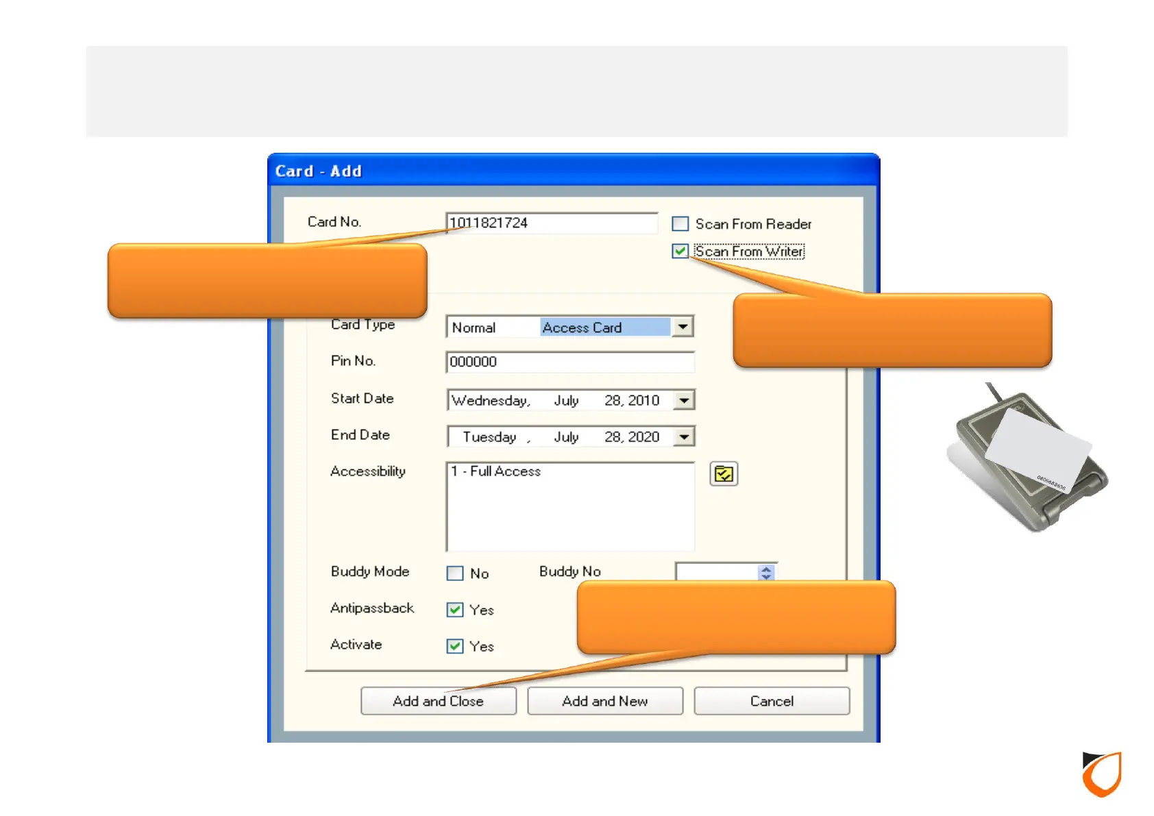 2. Else, scan the card no. using