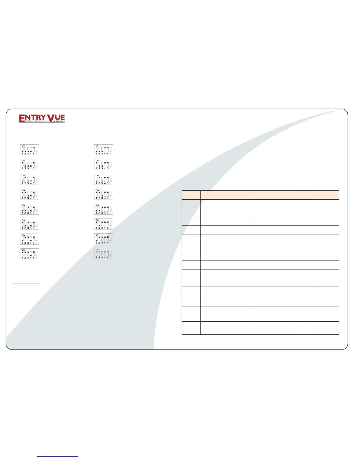 second button must be set with the following Dip Switches: