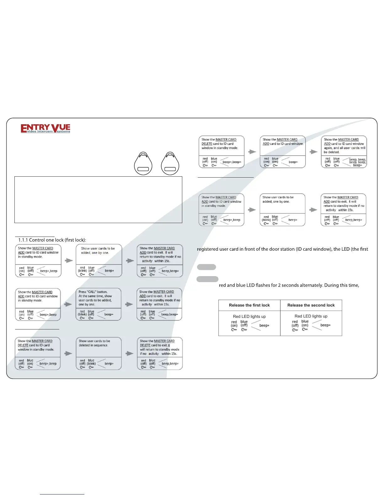 1 Lock: Show the user card to the ID card window to release the lock, Red LED