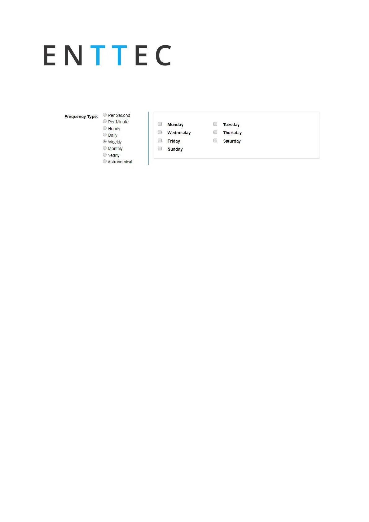 The selected playlist will play on the selected days every week or as specified in the text box.