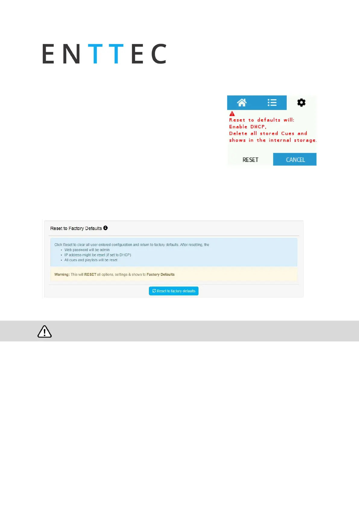 Following a factory reset, for best practice ENTTEC