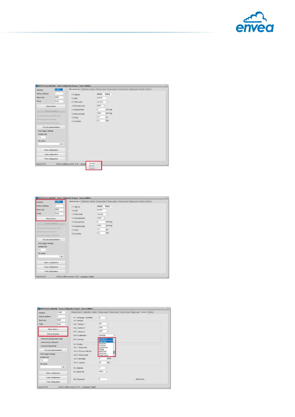 Our dedicated software must be used to connect to the sensor Evaluation unit.