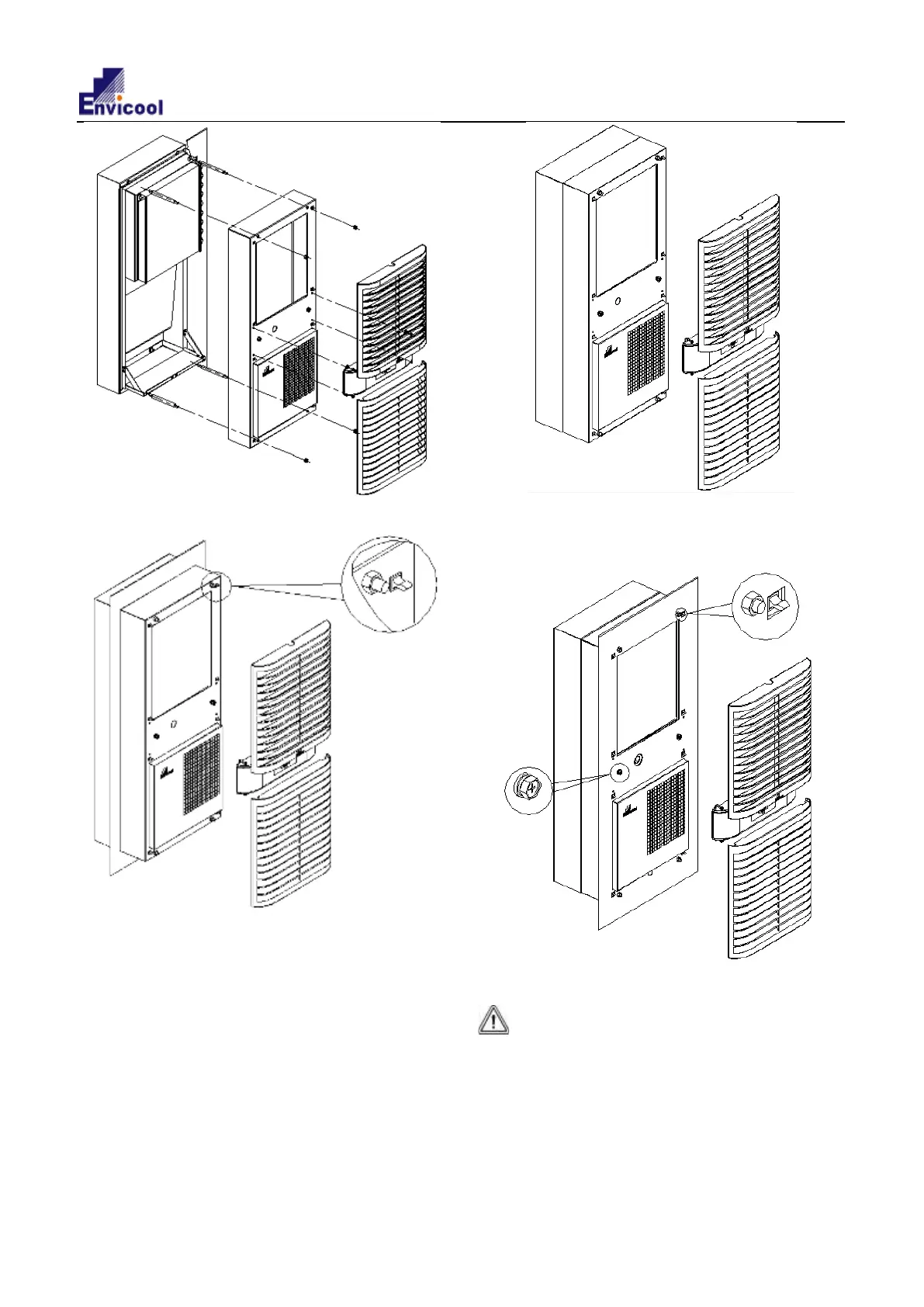 2) Install the air conditioner on the cabinet and fix