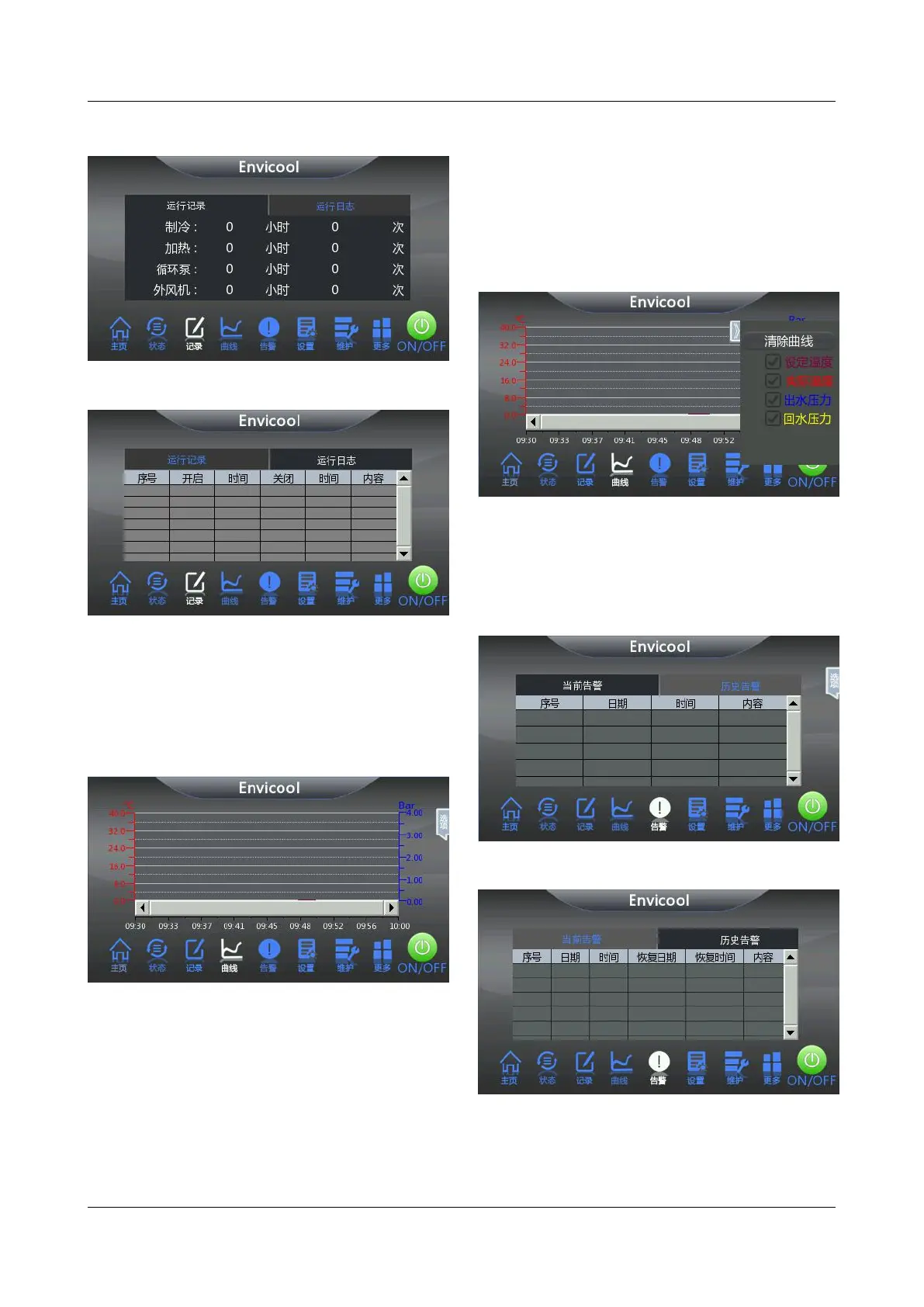 度曲线、出液温度曲线、出液压力曲线、回液温度