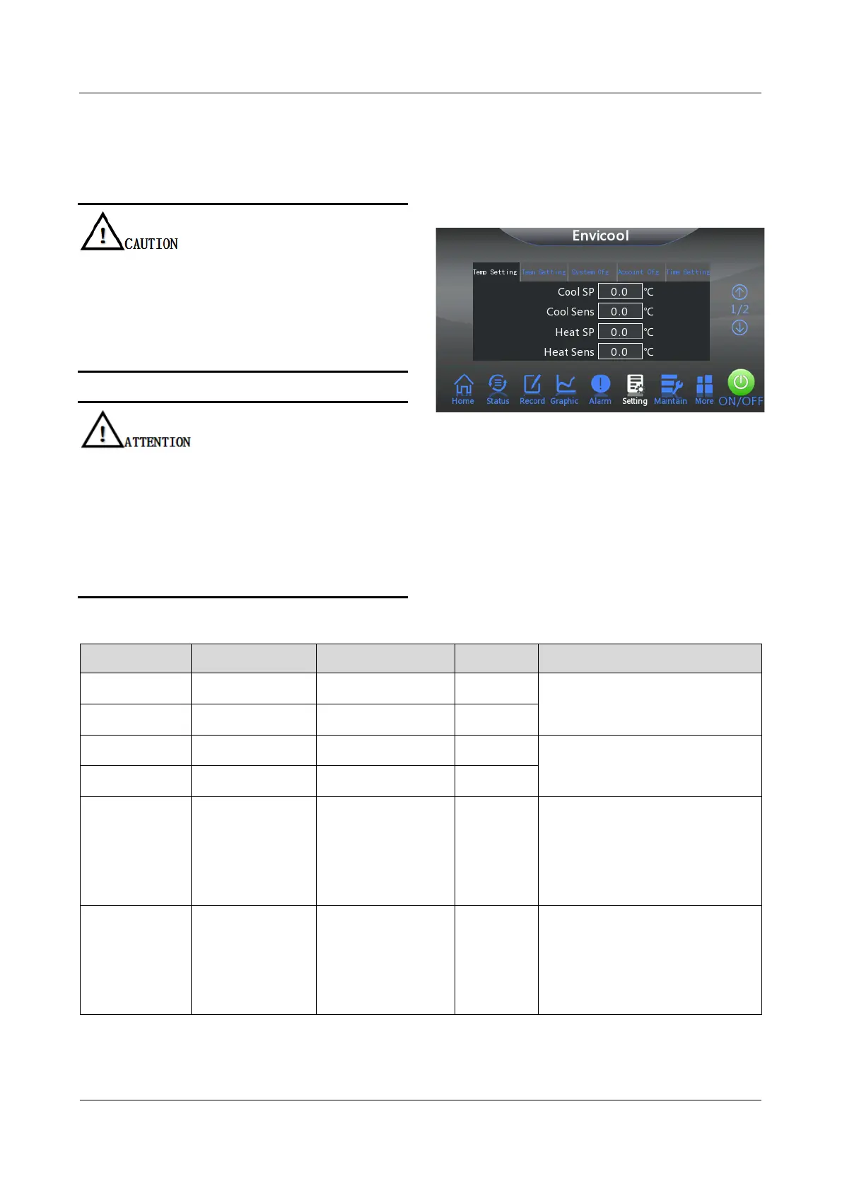 Table 4-2 Parameter description of the Temp Setting interface