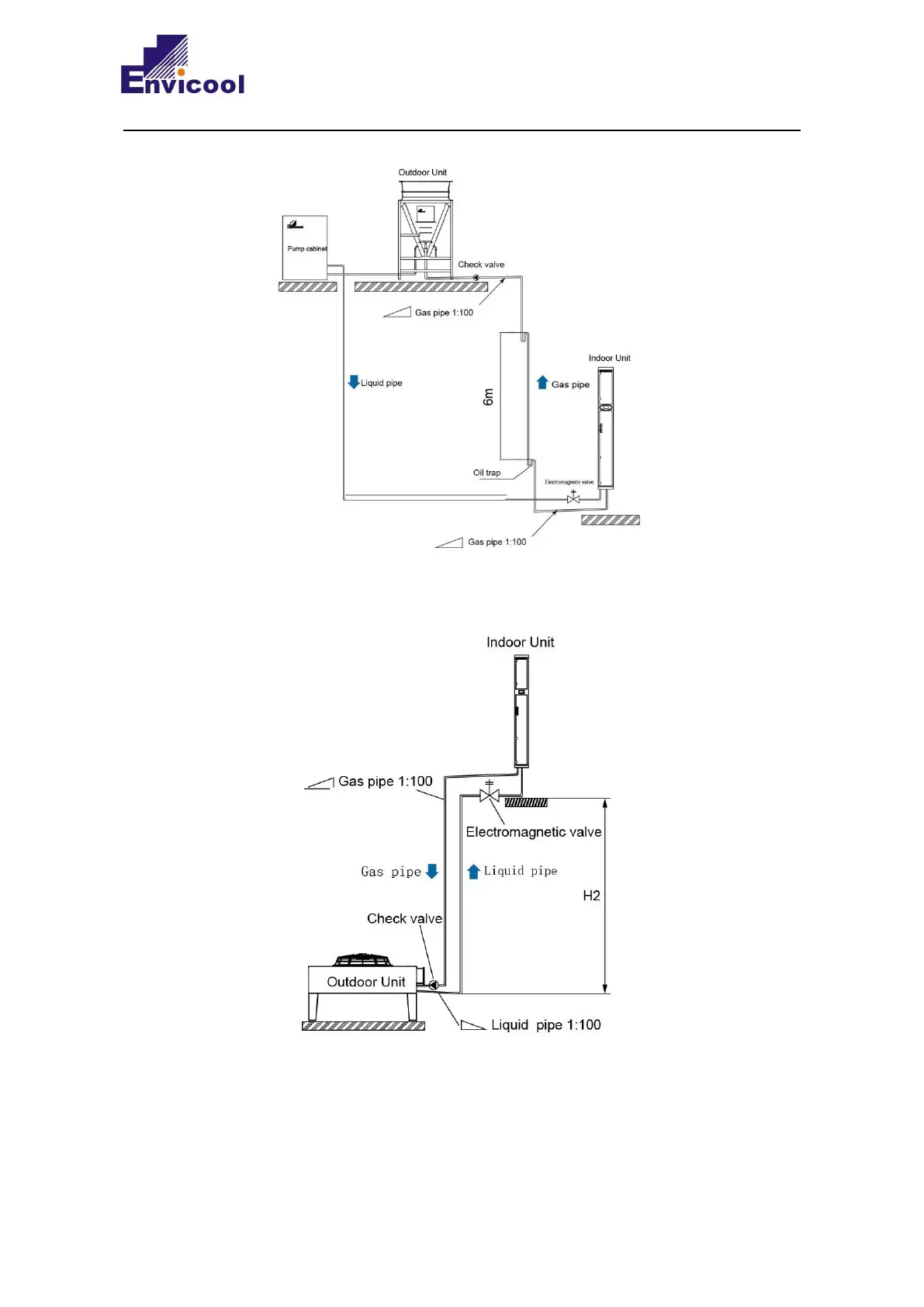 Fig. 2-20 Installation drawing (when the condenser is lower than the indoor unit)