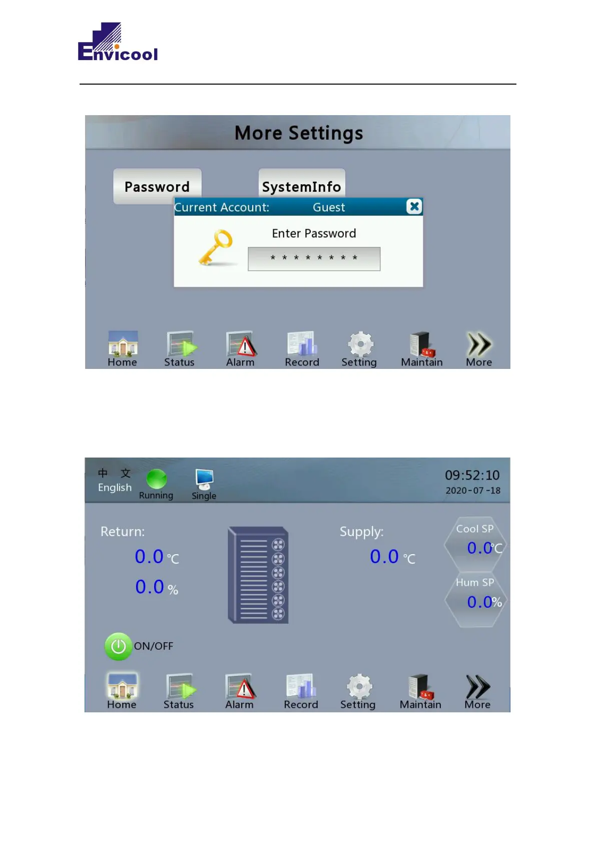check the alarm recording, alarm history and system status.