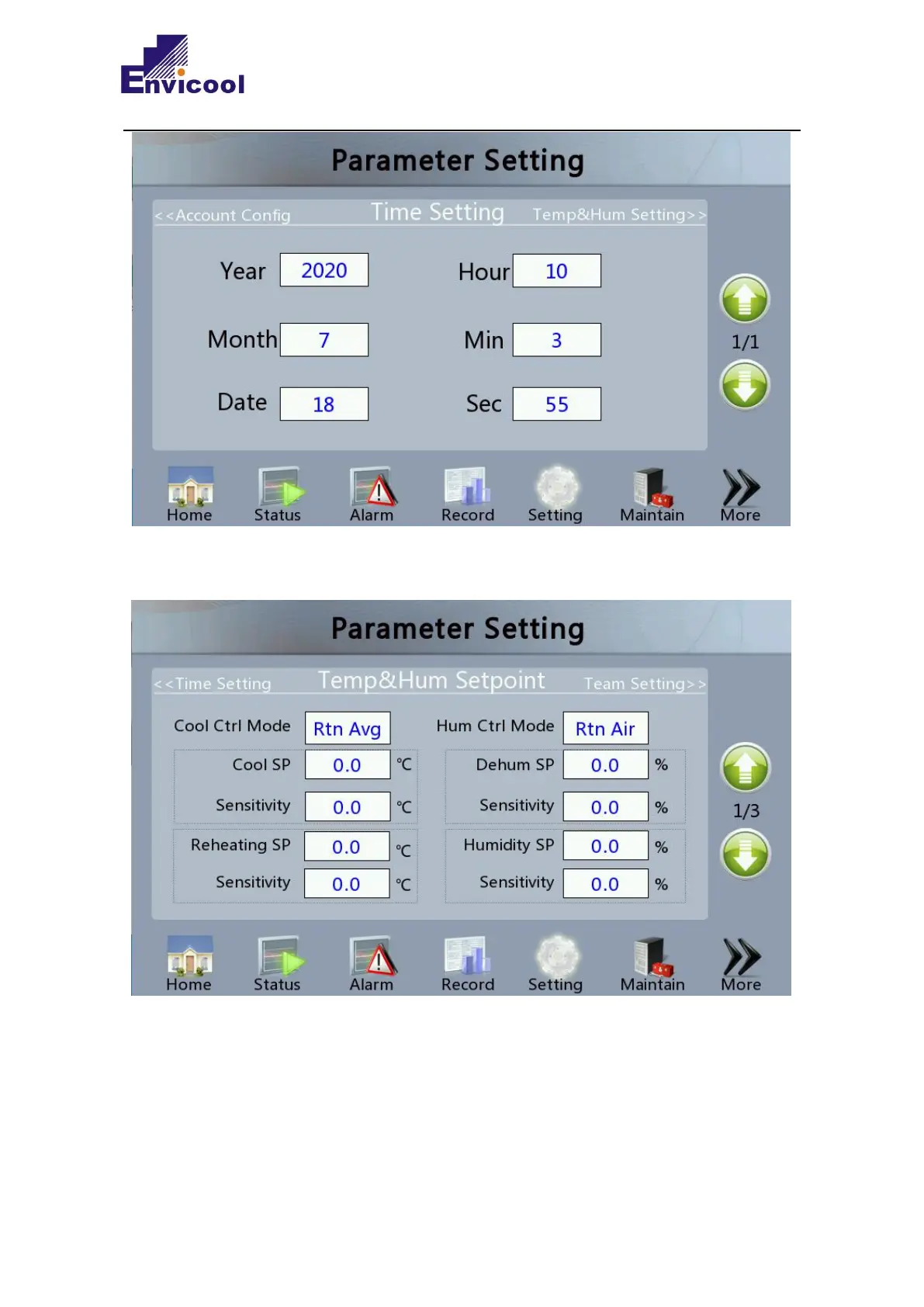 address, high and low temperature alarm, high and low humidity alarm set values and other