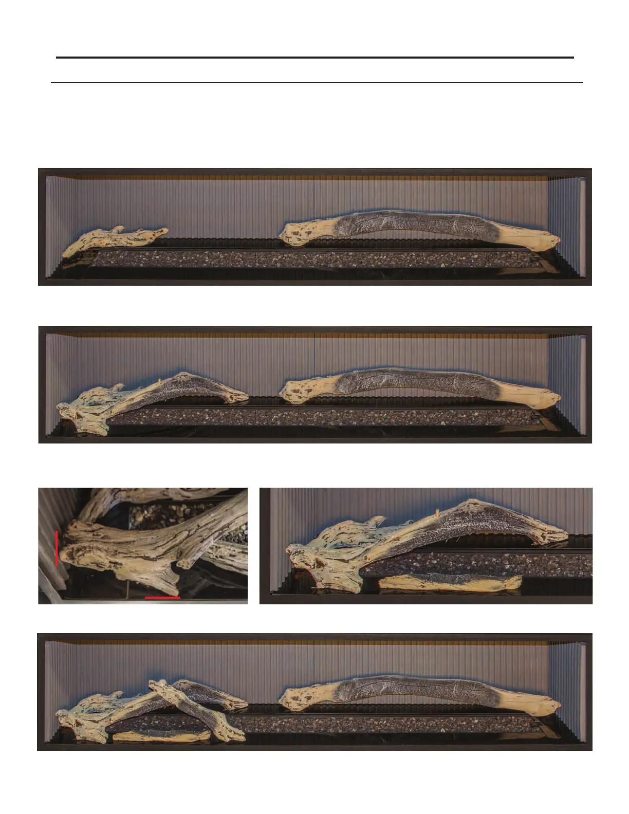 The placement of the logs is not arbitrary. If they are positioned incorrectly, the ames can be impinged and