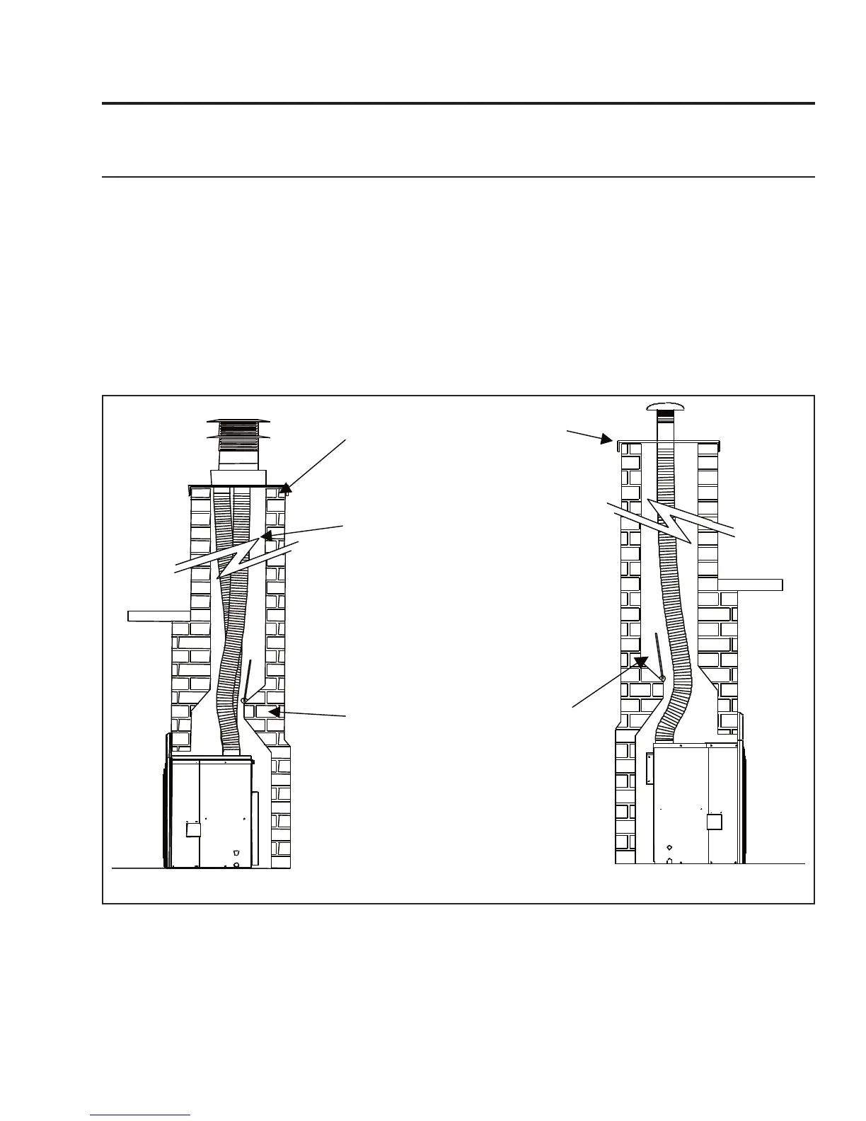 An approved chimney liner and rain cap must be used. A throat connector or ashing must be installed