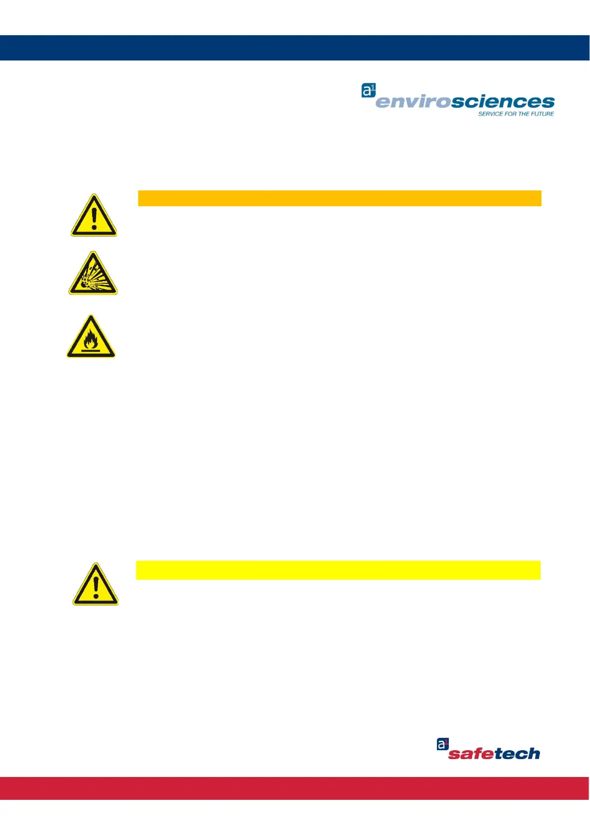Warning of explosion and fire hazards