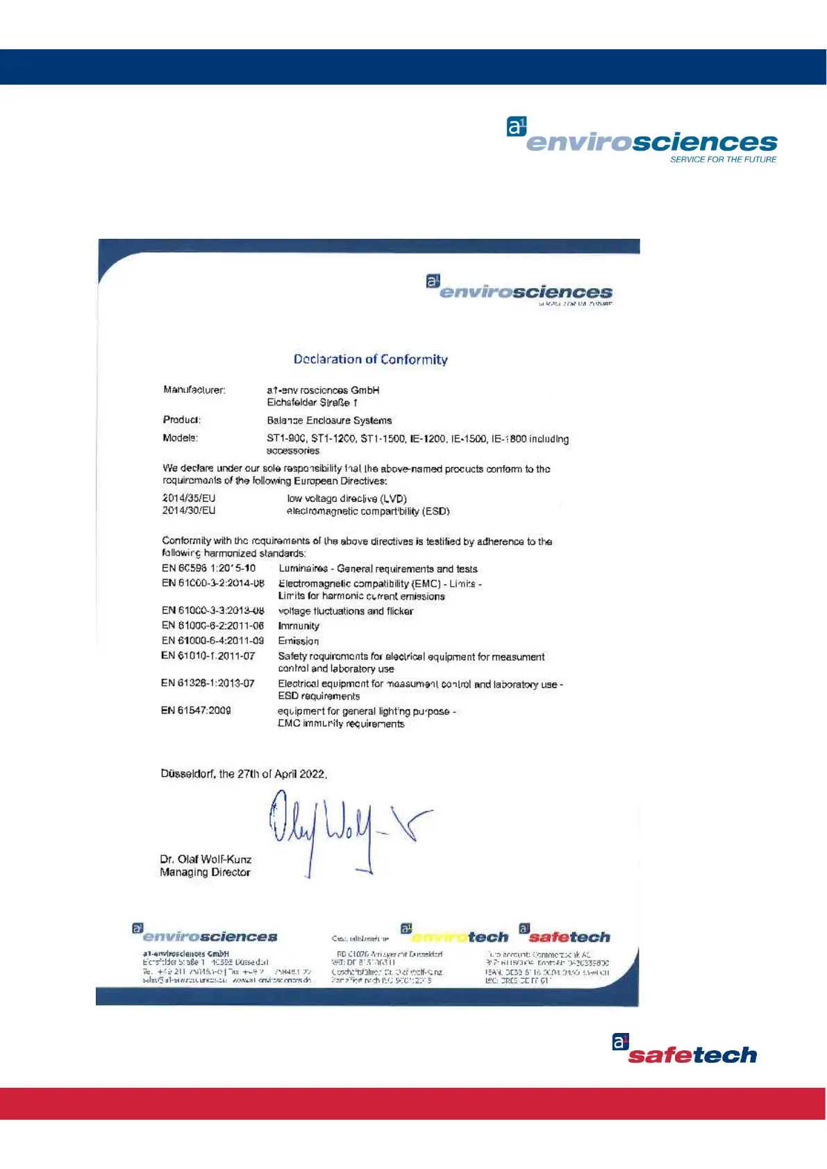 Appendix D - Declarations of conformity