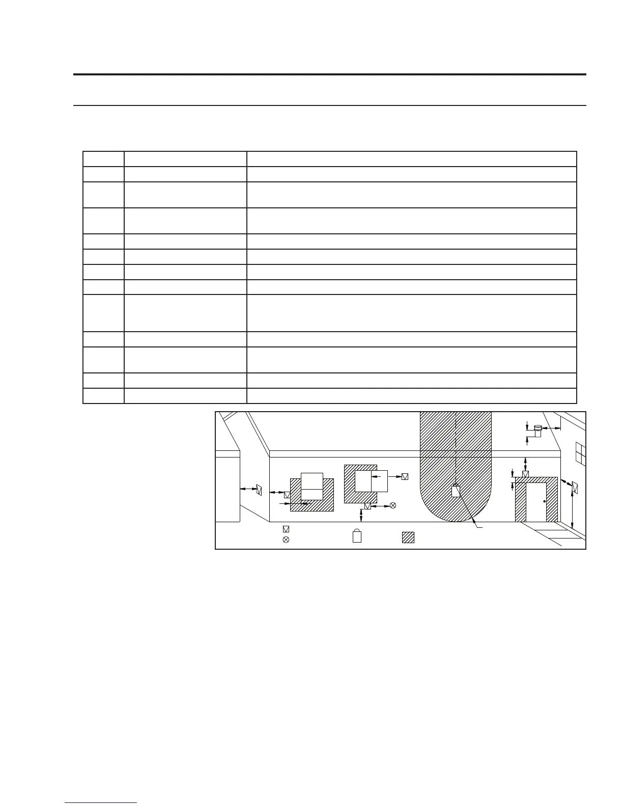 D 24 in (61 cm) To any adjacent building, fences and protruding parts of the structure.
